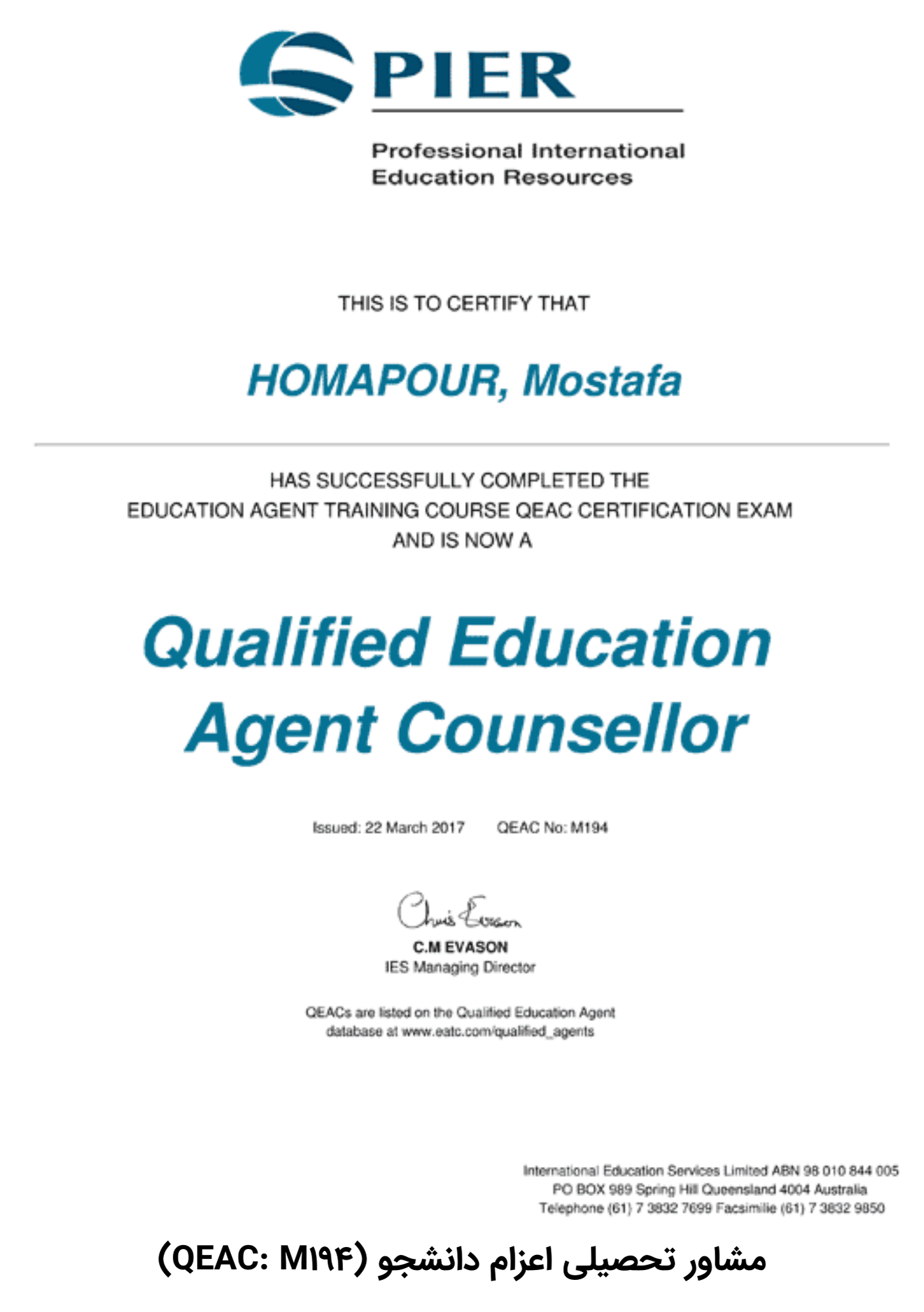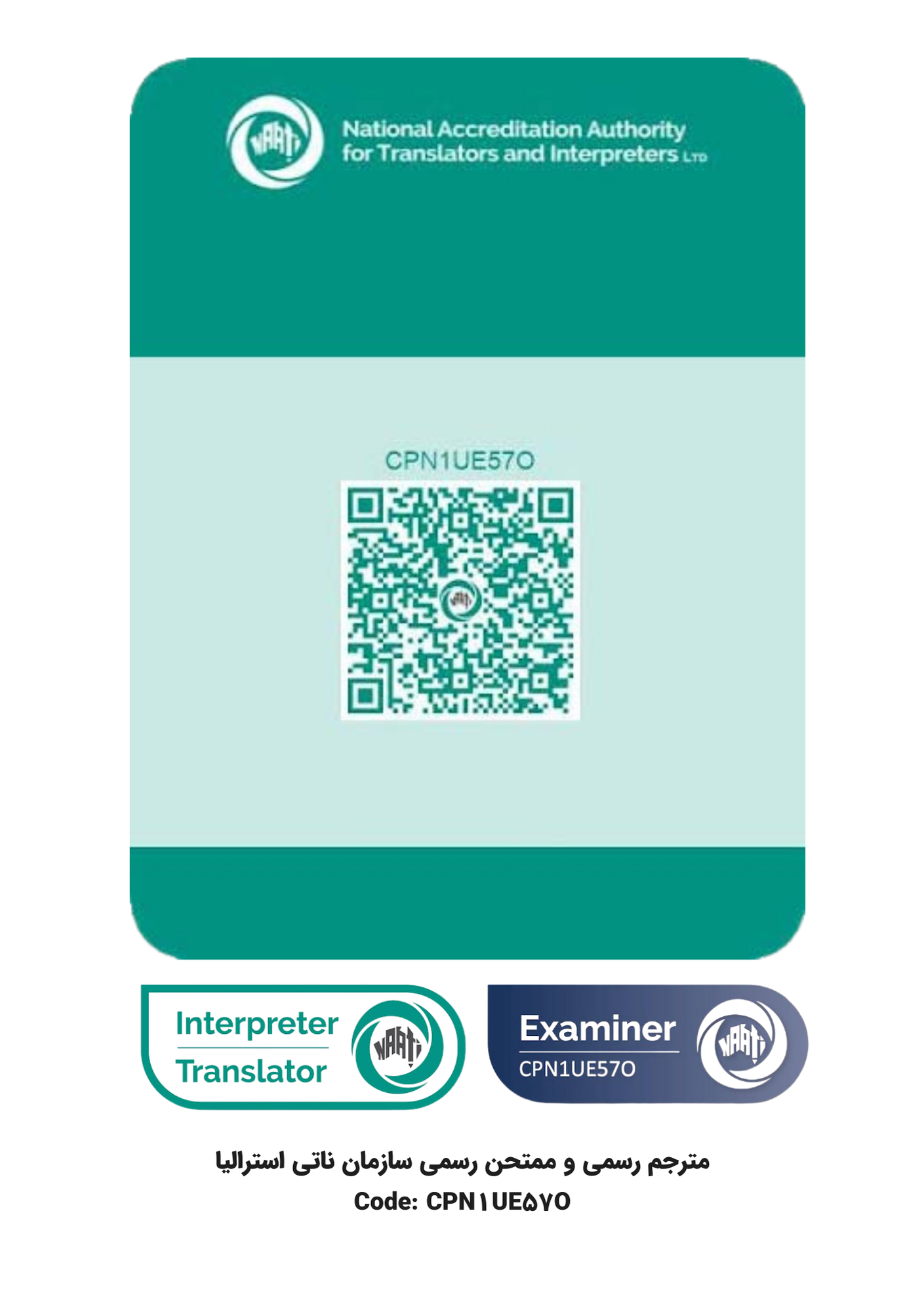 مترجم رسمی و ممتحن رسمی سازمان ناتی استرالیا Code CPN1UE57O