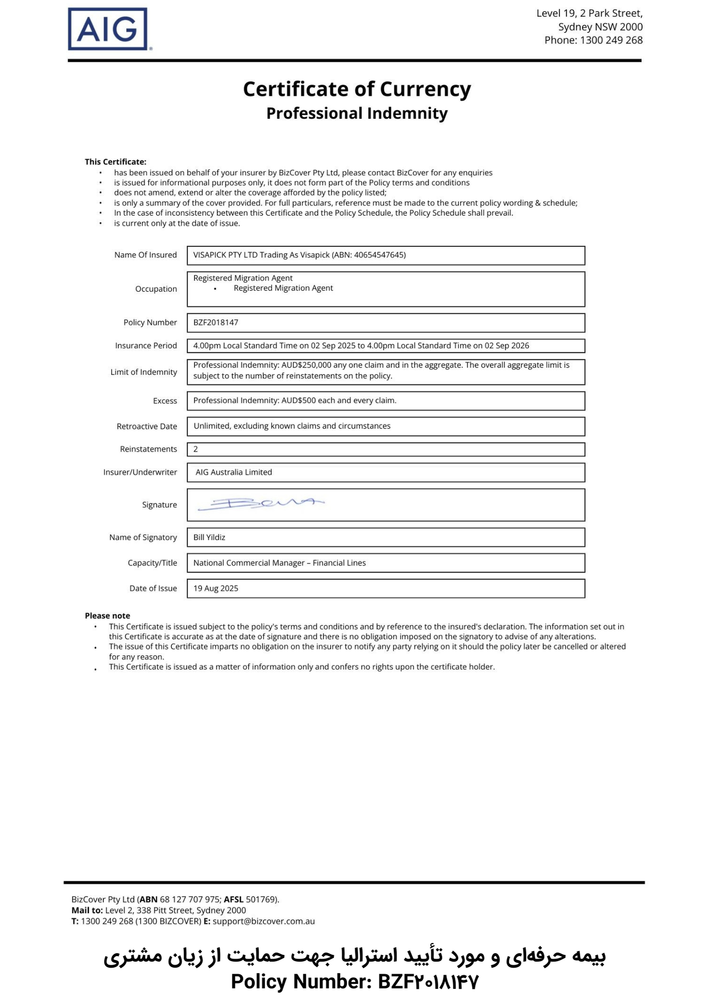 بیمه حرفهای و مورد تایید استرالیا جهت حمایت از زیان مشتری