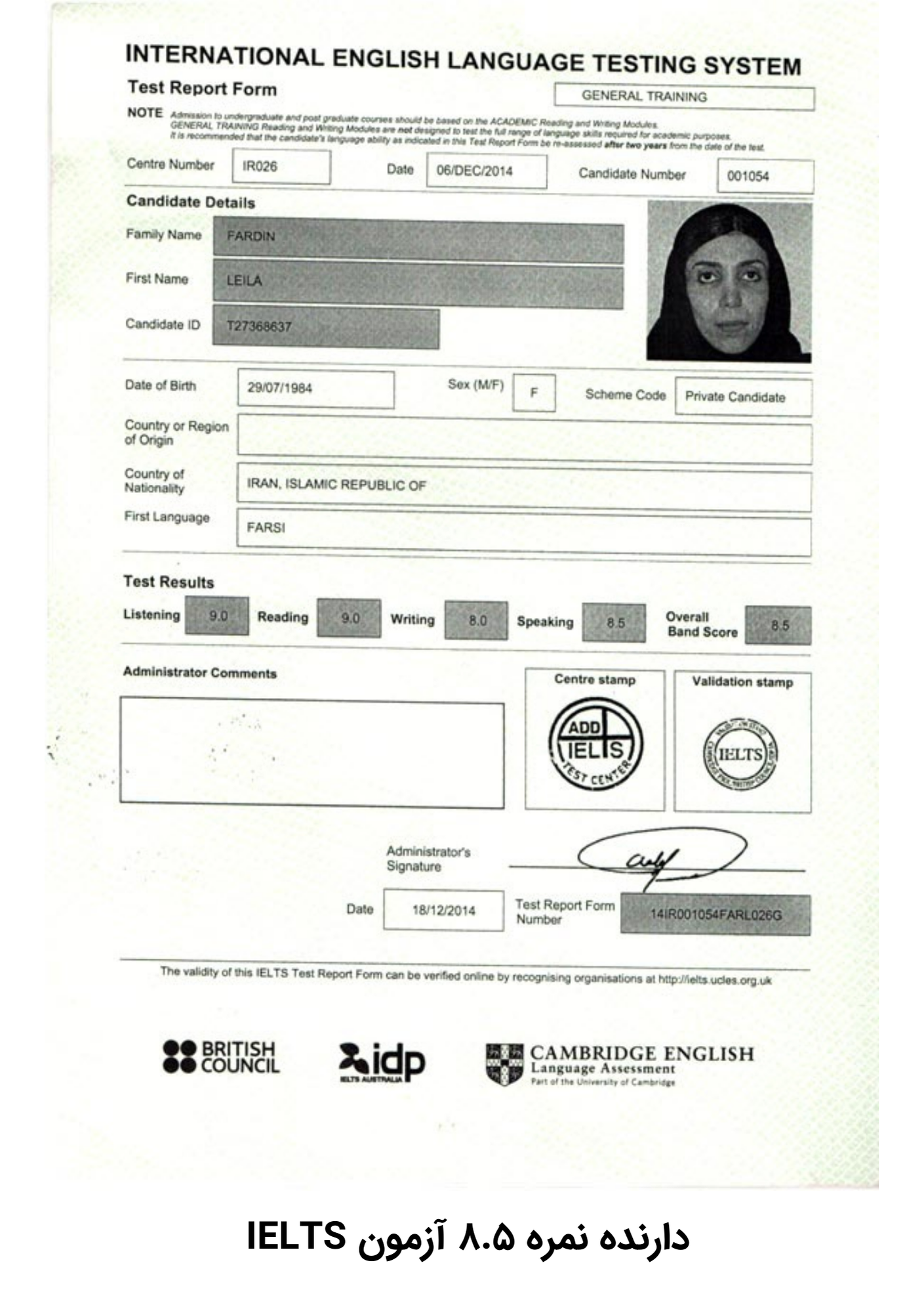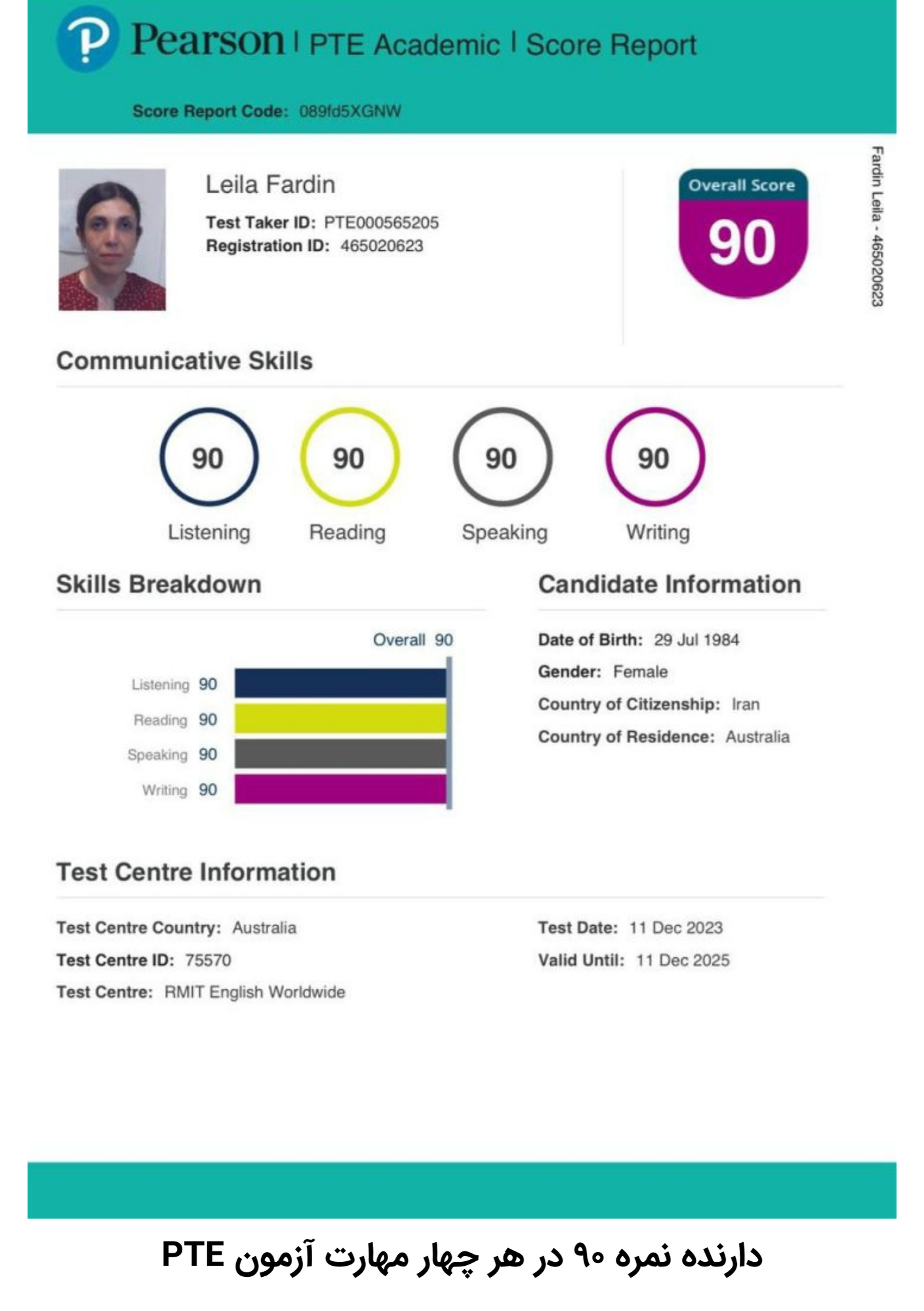 دارنده نمره 90 در هر چهار مهارت آزمون PTE
