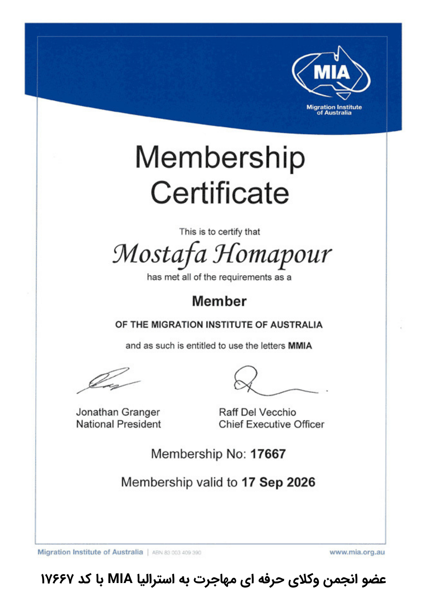 عضو انجمن وکلای حرفه ای مهاجرت به استرالیا